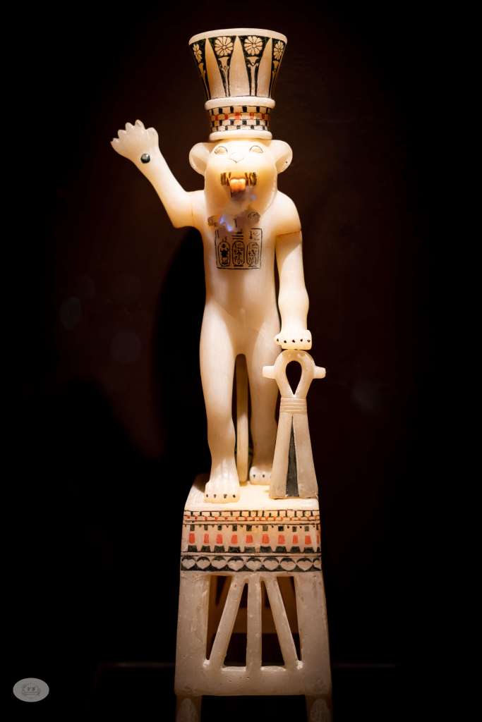 L’autre lit à tête d’hippopotame représente un animal hybride symbolisant la déesse Ammit qui dévore les cadavres lors de la pesée des Ames.