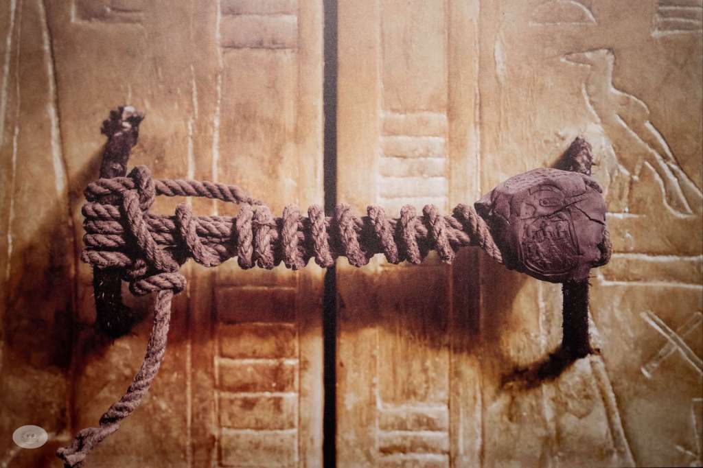 Les pieds du défunt devaient toucher le panneau du lit ornée des signes DJED et TIT, emblème d’Osiris et Isis.