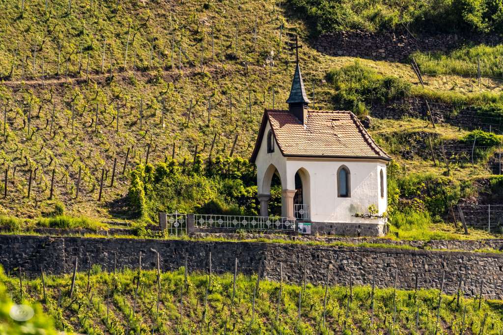 Nous arrivons à Thann, c’est en réalité à la base une aire de vidange, mais à coté de cette aire de vidange pour camping car il y a un parking asphalté qui est le bienvenue pour apparemment une bonne partie de ceux qui passent par là. Tout autour vous pouvez également apercevoir les vignes qui nous entourent, et au milieu de celle-ci une belle petite chapelle qu’on voit du parking.