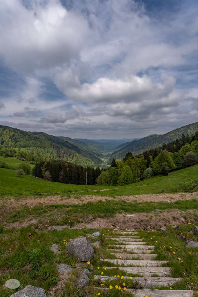 Notre premier arrêt c’est fait sur le bord de la route au dessus de la maison de la nature du Rottenbach à Wildenstein. C’est un endroit fort fréquenté avec des balades nature et des balades guidés organisées par la maison de la nature et il y avait du monde. Nous nous sommes arrêté plusieurs fois, soit pour faire pipi au chien et en même temps pour admirer tous les paysages qu’on traverses.