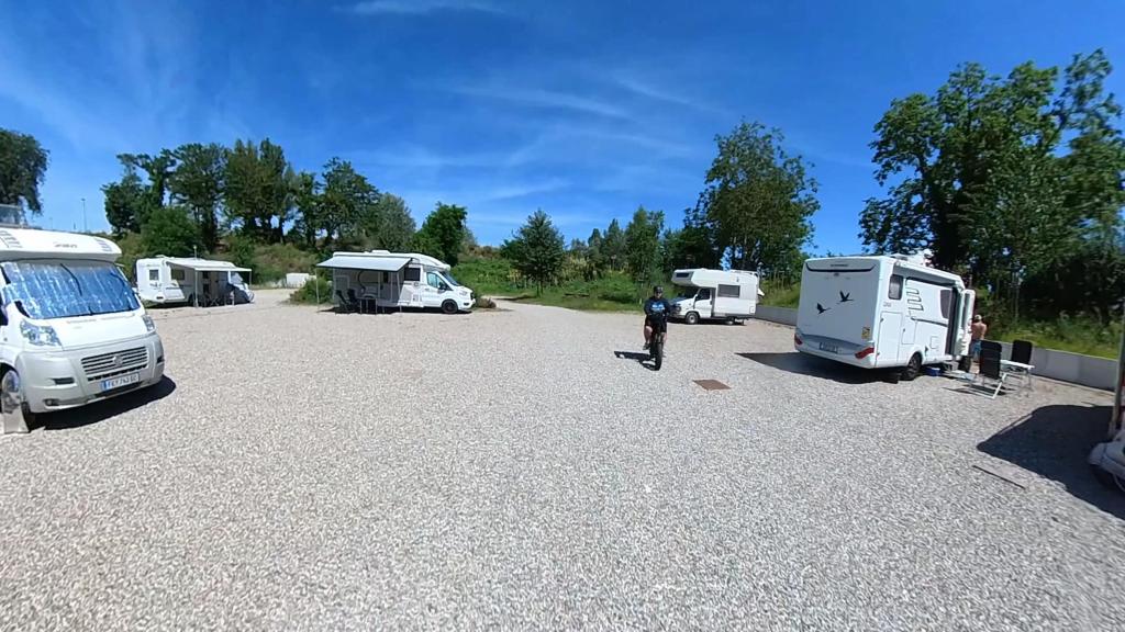 Quand vous êtes sur cette aire de cc, vous pouvez facilement aller faire des courses chez LIDL à vélo. Piste cyclable et route pas trop fréquentées. Nous avons alors fait 10 Km plus ou moins pour faire nos courses et avec la remorque c’était bien pratique.
