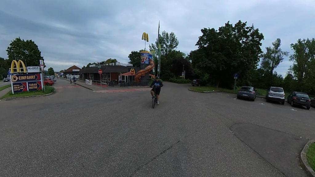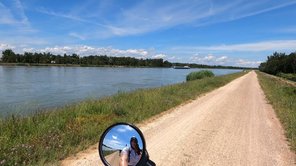 Pas besoin de rouler sur les routes, pas besoin de chercher son chemin, tout est sécurisé et tout est balisé. Pour notre part, nous sommes allés vers la ville de Breisach, nous sommes passés derrière le Mc Donald et sommes descendus le long de la piste cyclable.