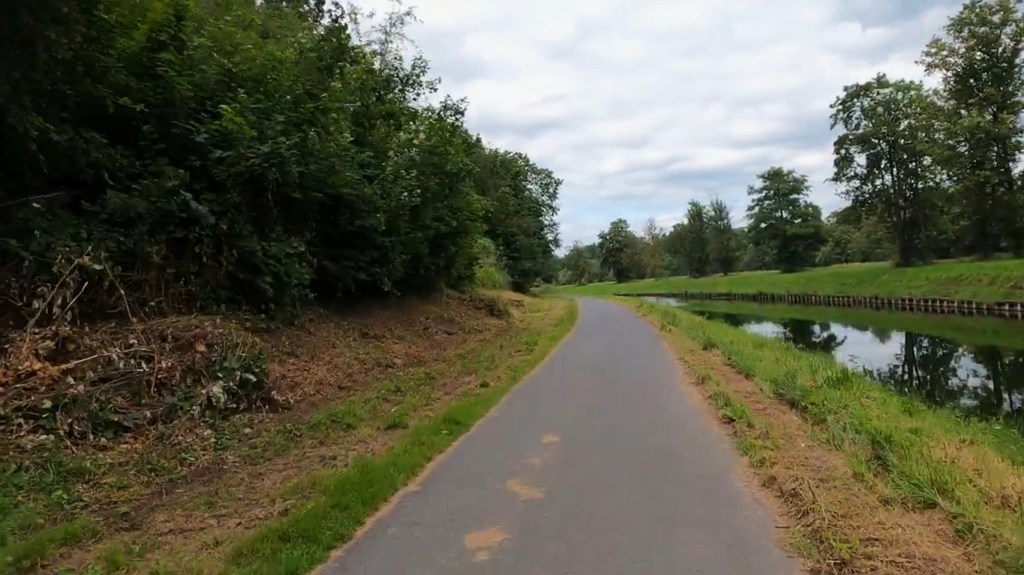 Nous, pour notre petite promenade à vélo, sommes partis en direction de Sarrebruck et je trouve que c’est une chouette promenade avec des bancs et de petites aires de pique-nique à certains endroits. À Sarrebruck, nous avons fait demi-tour parce qu’on ne voulait pas aller dans la ville. Le long de la rive était en travaux, ce qui nous a obligés à sortir du ravel.