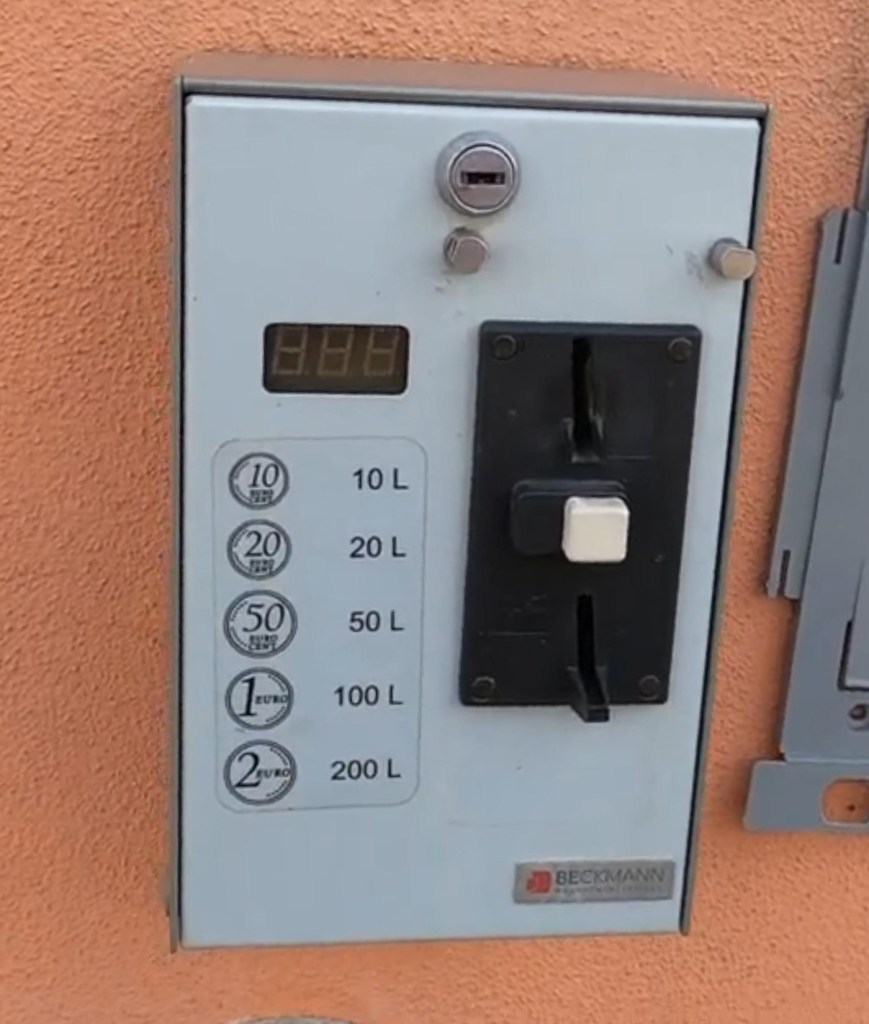 Le système de chargement en eau potable est super bien fait, je trouve. Tu mets des petites monnaies, pour 10 cents, tu as 10 litres, pour 20 cents, 20 litres, et ainsi de suite. Il y a moyen de ne pas gaspiller l’eau et d’avoir le juste de ce qu’il te faut dans ton réservoir.