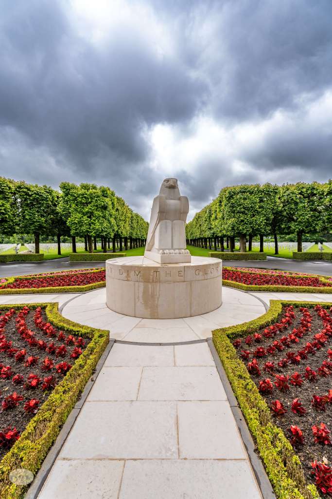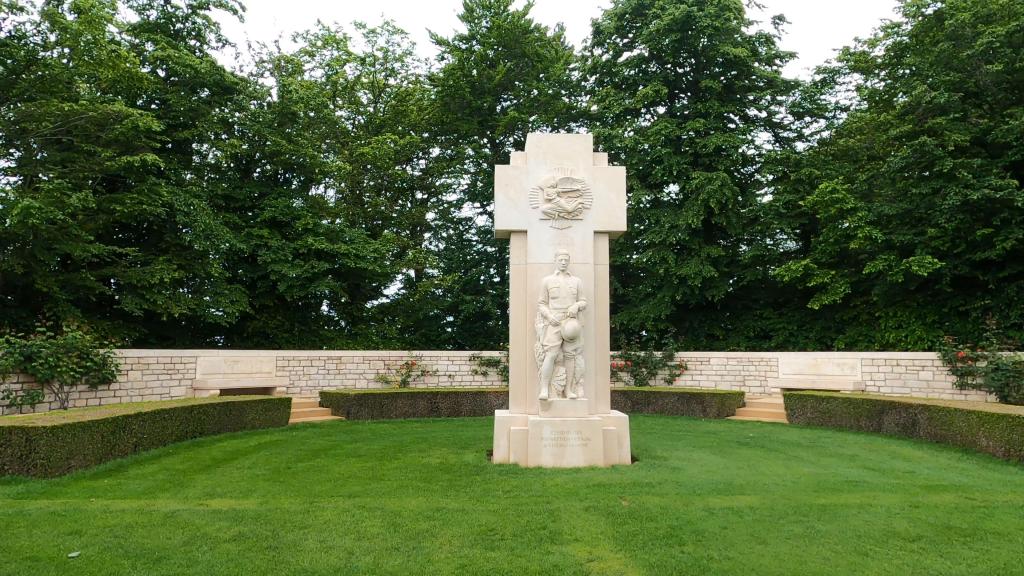 En sortant du mémorial, nous nous sommes dirigés vers notre gauche. Là, vous découvrirez une statue érigée par Harriet Beale dont le fils est enterré dans le cimetière. On peut y lire : « Il dort loin des siens dans la douce terre de France ».