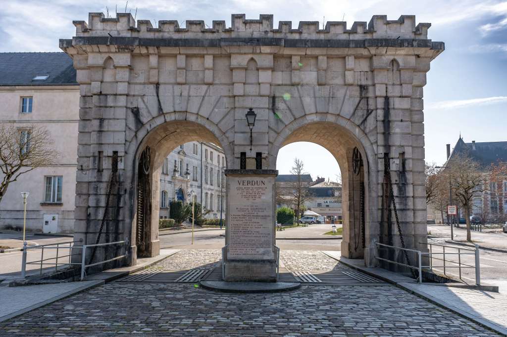 Nous continuons un peu plus loin et avons l’occasion de quitter la voie pour nous rendre à cette tour. Nous passons devant un premier monument, le monument aux morts des enfants de Verdun. Nous passons le pont et nous dirigeons vers la tour/porte Chaussée.