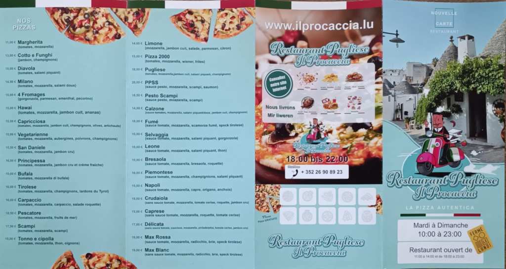 Je t’ajoute ici une carte de Troisvierges si tu décides de parcourir le village et si, comme nous, après ta balade à vélo ou à pied, tu as une envie de manger sans rien faire. Eh bien, nous te conseillons le restaurant italien qui est près de la gare. Il livre et les pizzas sont très bonnes.