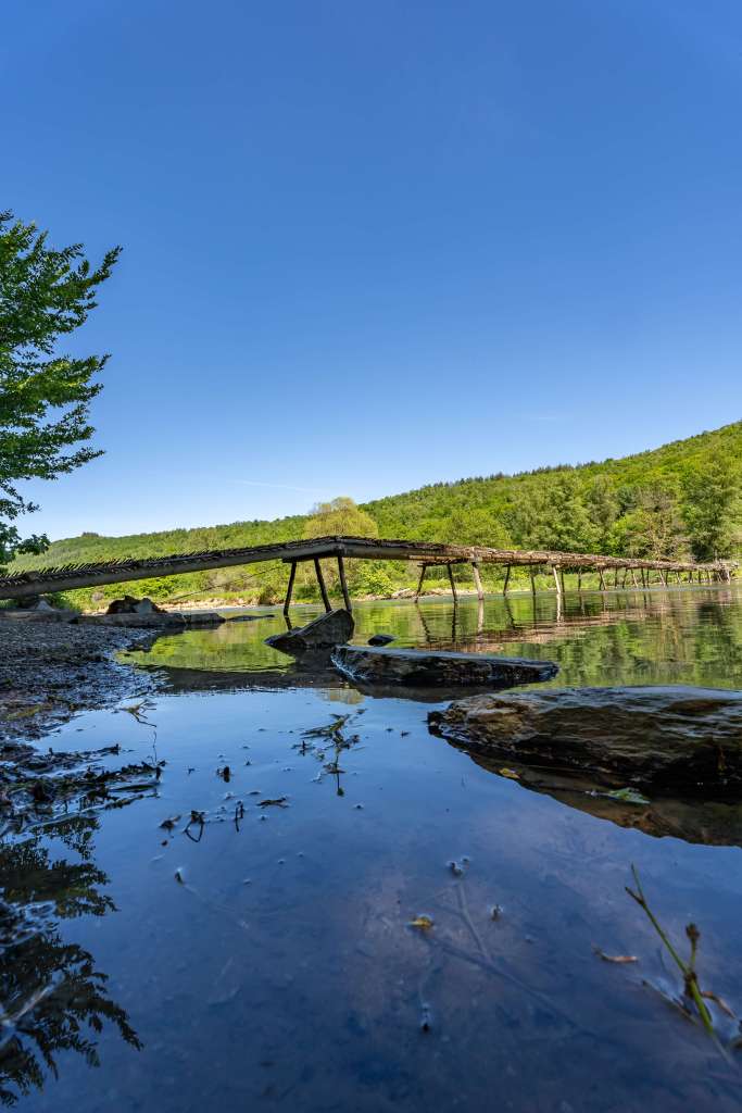 Ce pont éphémère en bois, reconstruit chaque été par les habitants, permet de traverser la Semois à pied. Bonne surprise : il est déjà en place cette année !
