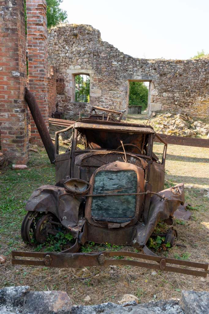 Les troupes SS ont ensuite incendié le village, laissant derrière elles des ruines que le général de Gaulle a choisi de conserver en l’état.