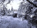 La neige recouvre tout : les chemins, les branches, les troncs.