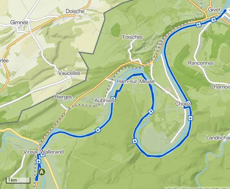 Un parcours idéal pour une sortie en famille et agréable à vélo électrique, avec de beaux passages comme la voie verte / le RAVeL le long de la Meuse, le passage par Chooz et la vue sur la centrale nucléaire située juste en face du parcours.