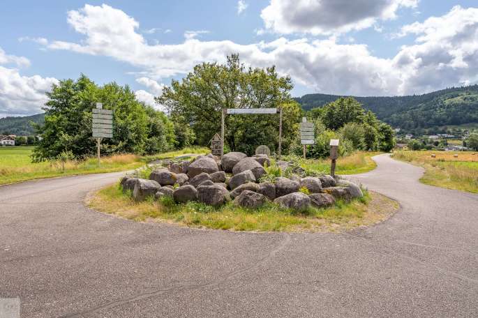On est aussi passé à l'endroit où l'Olef alimente le lac. Un chouette coin pique-nique avec un bruit de cascade en arrière-plan. C'est apparemment le carrefour de différentes promenades, dont celle du souvenir qu'on a déjà croisé à plusieurs endroits.