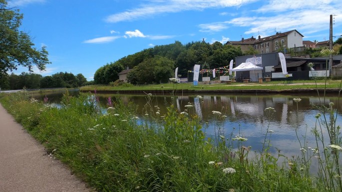 C'est au final la voie bleue qui va de Lyon aux portes du Luxembourg. Pour notre part, le premier jour nous avons été, enfin c'est ce qu'on pensait sans connaitre la région, au-delà d'Épinal et le deuxième jour nous sommes allés jusqu'à Charmes, qui est un joli village dont on est réellement tombé sous le charme