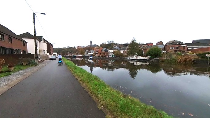 Balade automnale à vélo sur le chemin de halage de la Sambre, entre Erquelinnes et le bas de Thuin, en passant par Merbes-le-Château, Fontaine-Valmont et Lobbes, avec vue finale sur le beffroi. 🚴♂️🍂